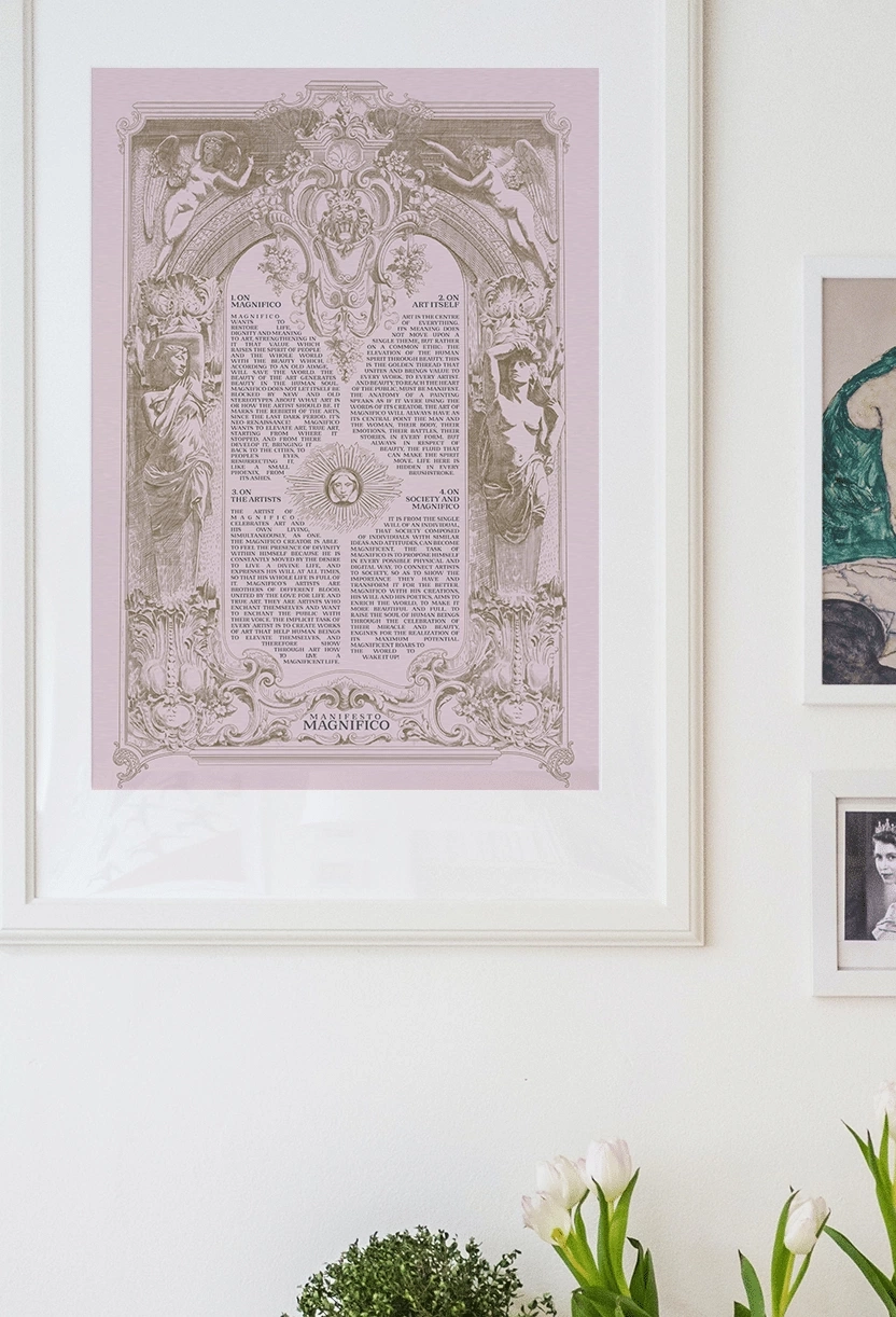 Magnifico is a maximalist art movement united in the form of an Association, that celebrates the rebirth of the arts and artists who are able to understand and convey the true and unique value of art through beauty.